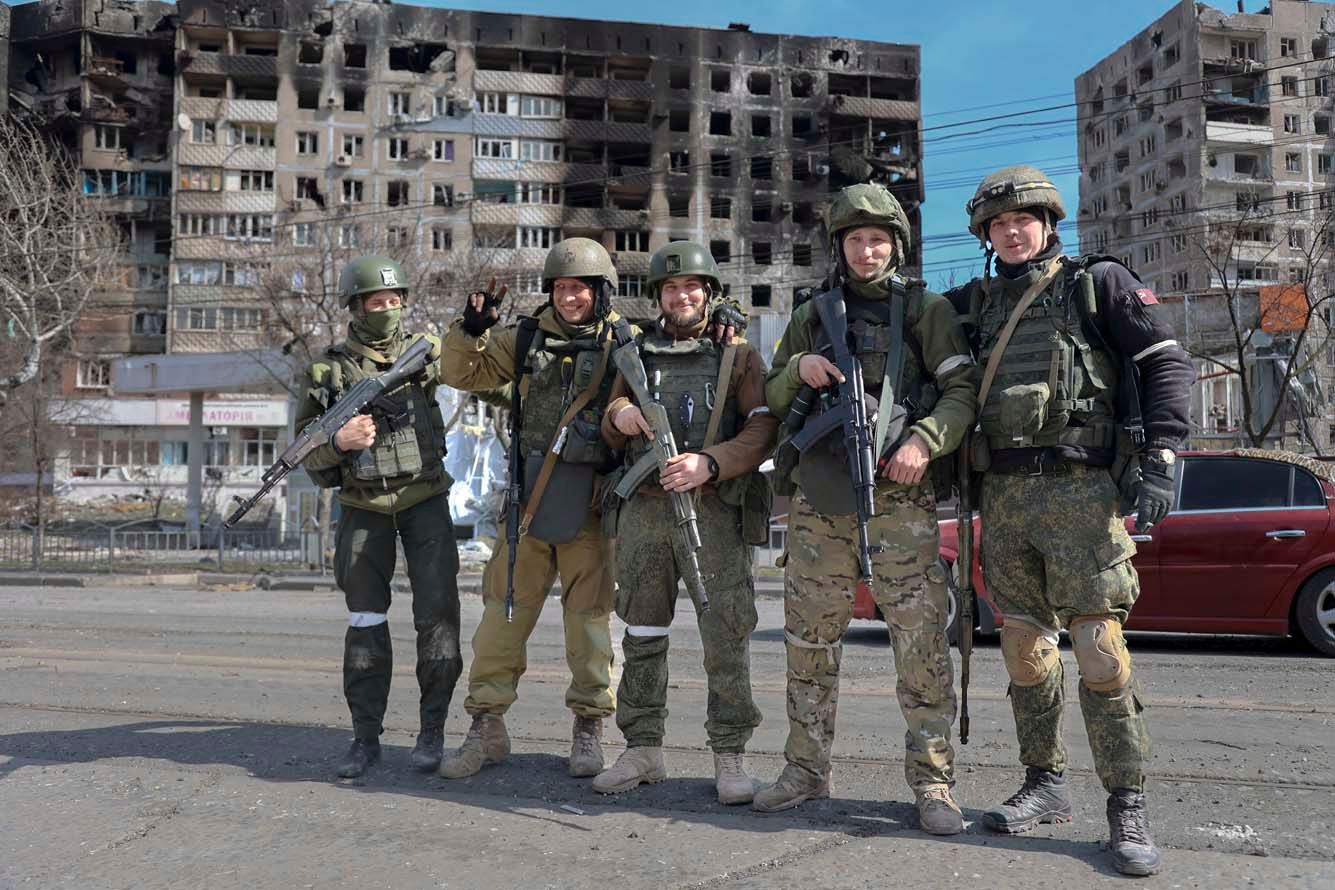 Военные из ДНР позируют на фоне разрушенных домов в Мариуполе. В Николаеве артиллерия уничтожила областную администрацию