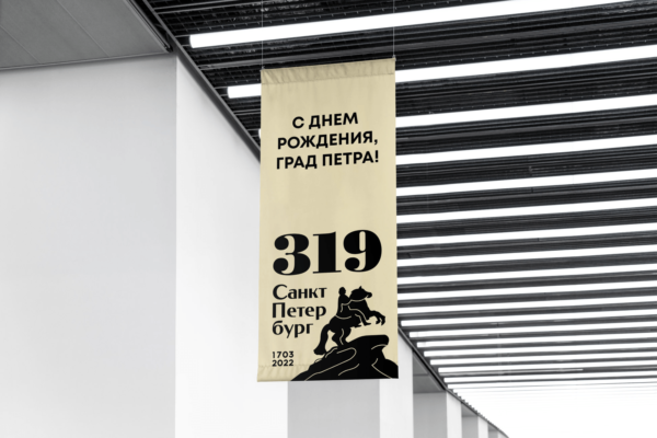 В основу лёг графический образ фигуры Медного всадника, а также переработанные шрифты петербургской словолитни Лемана, которые исторически использовались на городских вывесках и плакатах.