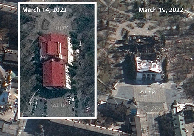 Театр в Мариуполе до и после авиаудара