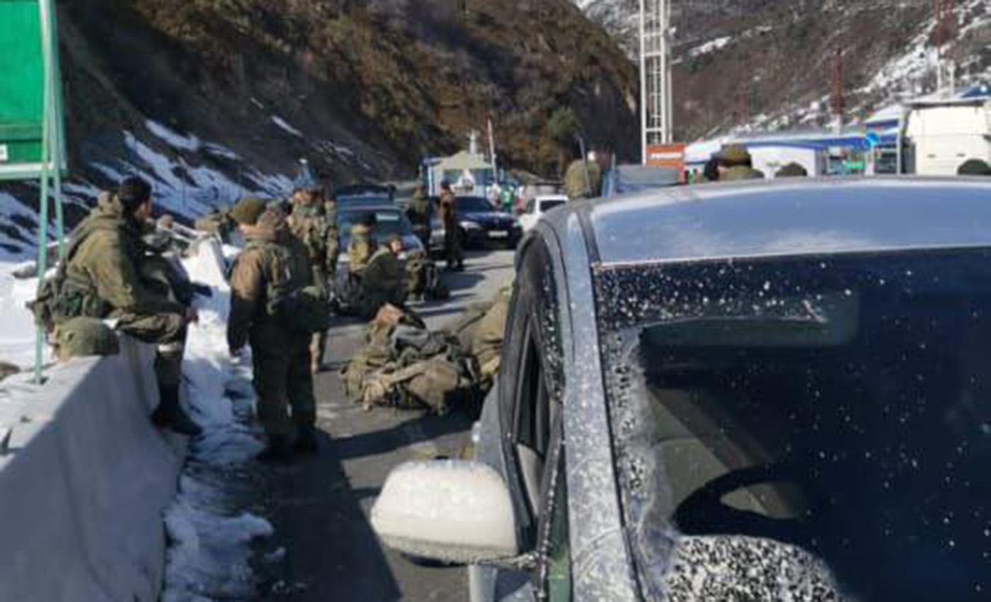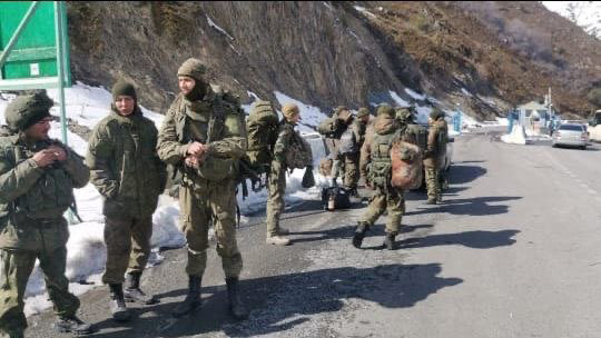 «Военнослужащие четвертой военной базы на КПП Нижний Зарамаг, — поясняет канал "Бонварнон". — На фото не видно ни автобусов, ни транспортных военных грузовиков». Позже там же уточнили, что на южной стороне Рокского тоннеля солдат ждала военная техника.