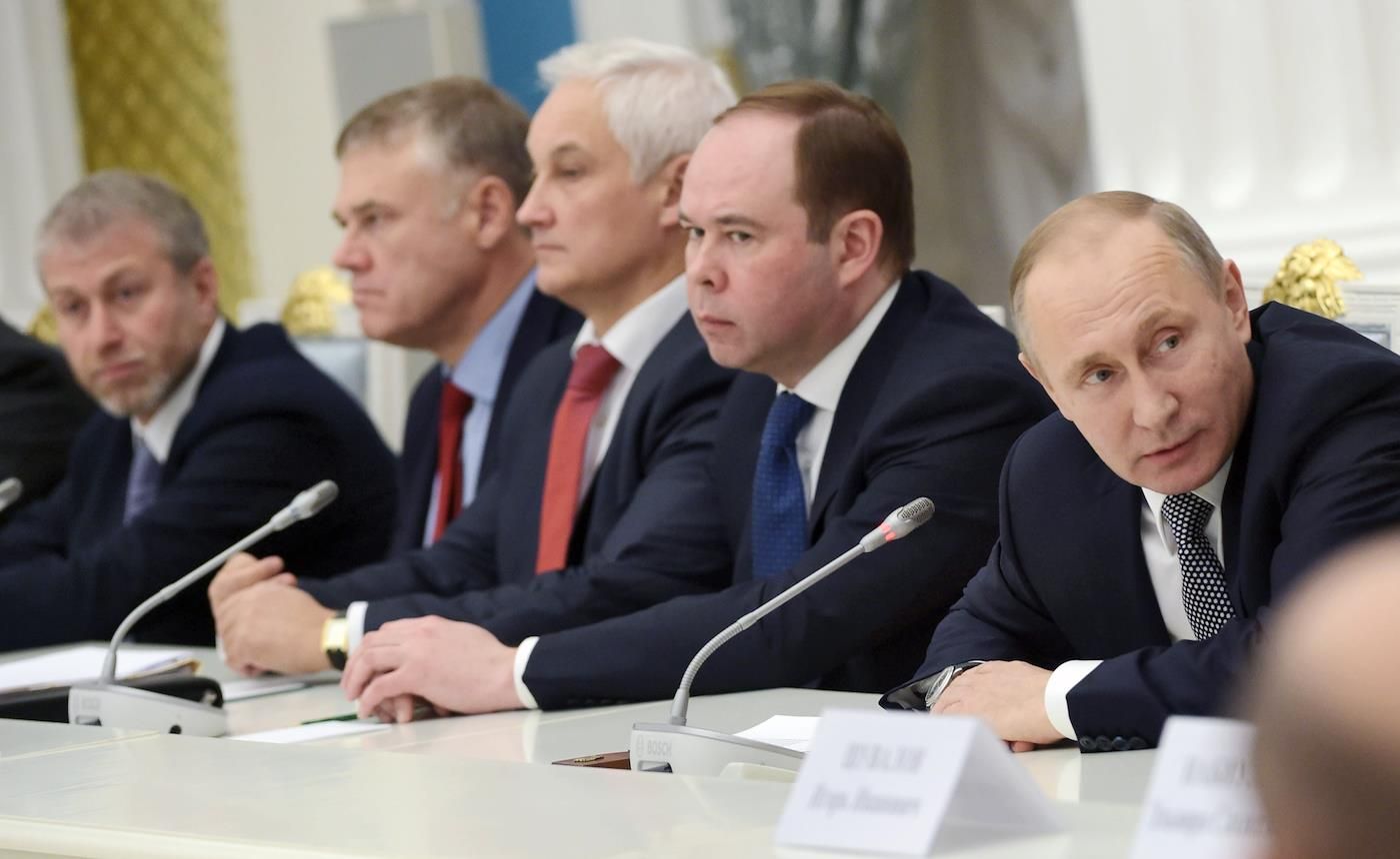 Дмитрий Азаров / Коммерсантъ Встреча Владимира Путина с представителями российских деловых кругов в Кремле. Роман Абрамович — крайний слева. 19 декабря 2016 года