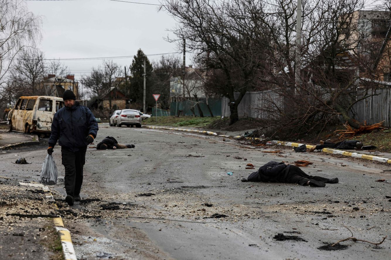 Фотографии убитых российскими войсками мирных жителей в Ирпене и Буче напоминают о массовых убийствах, совершенных советским и нацистским режимами. Это не поле боя, это место преступления. Массовые убийства мирных жителей Украины со стороны России являются очевидными военными преступлениями.
