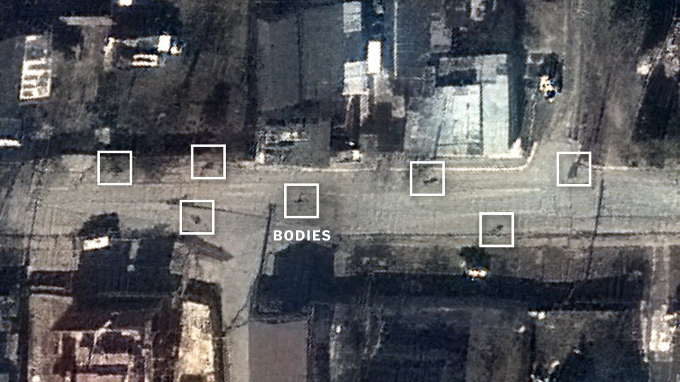 The New York Times показала мартовские спутниковые снимки Бучи и с их помощью опровергла Минобороны России. Некоторые тела на улице города пролежали три недели