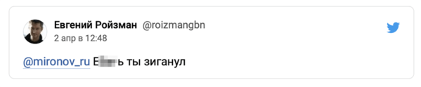 Дата04.04.2022АвторСкрытИсточникTJournalСохранённая копияInternet ArchiveOriginal MaterialShow translationПереписки Евгения Ройзмана и Сергея Миронова в твиттере Политики несколько дней обмениваются мнениями о «спецоперации». О буквах Z и V на баннере «Справедливой России» О Буче О Мединском О США #соцсети