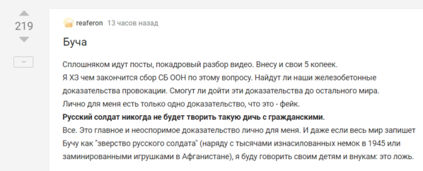 Доказательства не доказательства, вообще пох. Не может российский солдат такое сделать и все. Также как не может российский фсиновец затолкать швабру заключенному в одно место, а российский росгвардеец ударить пожилую женщину с ноги в живот.
