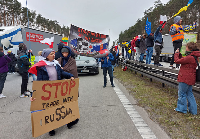 В понедельник замминистра инфраструктуры Украины Мустафа Найем сообщил, что Польша, Литва, Латвия и Эстония в ближайшие двое-трое суток могут принять решение о прекращении автомобильного сообщения с Россией и Беларусью. С такой просьбой к министрам транспорта этих стран обратился министр инфраструктуры Украины Александр Кубраков. Позже премьер-министр Латвии Кришьянис Кариньш заявил, что решение о транспортной блокаде России должно исходить от Евросоюза. Министр обороны Латвии Артис Пабрикс считает, что транспортная блокада - это "определенно вопрос для рассмотрения".