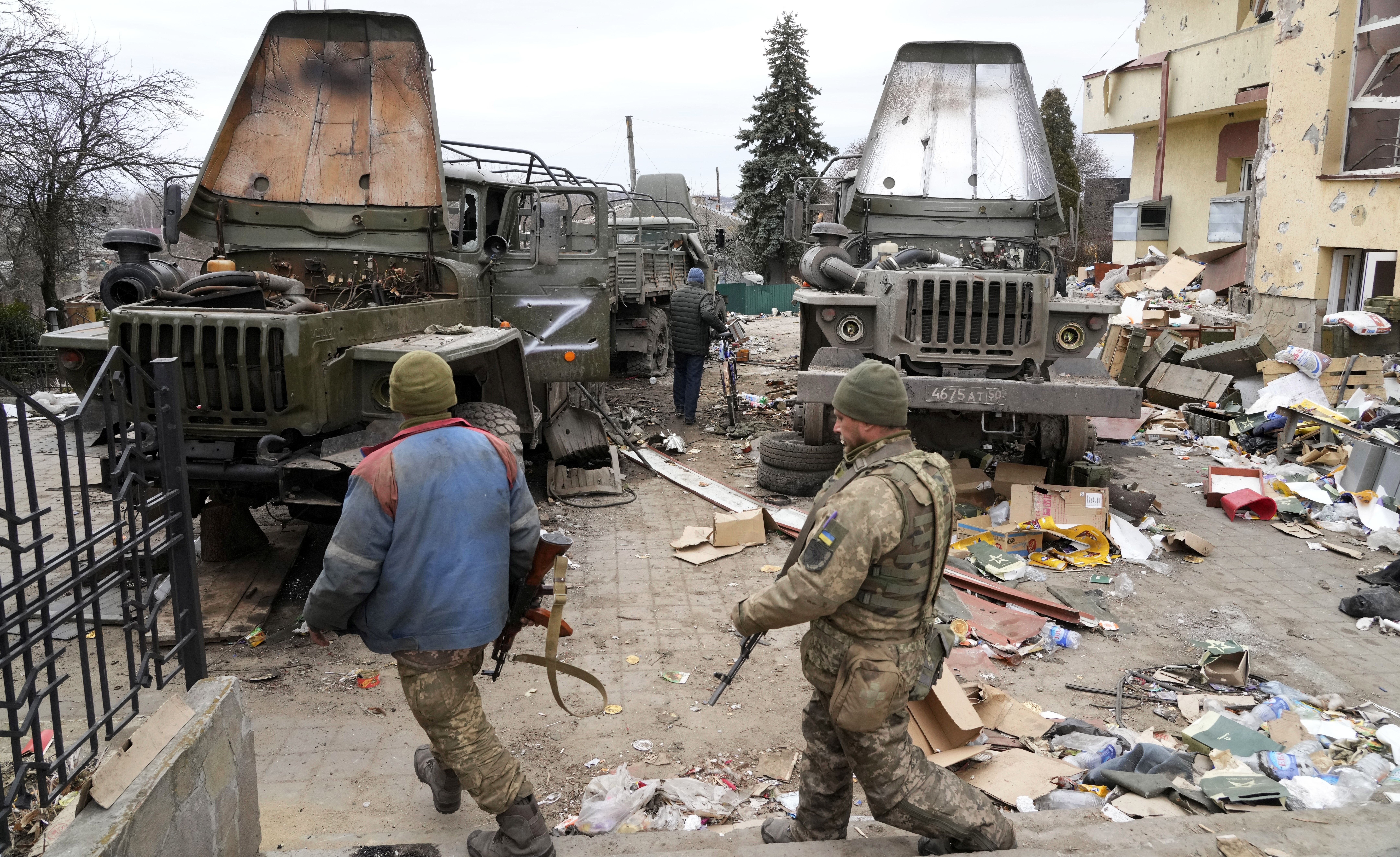 Российское военное вторжение в Украину продолжается с утра 24 февраля. Колонны бронетехники российской армии с целью оцепить Киев дошли до городов и населенных пунктов столичного региона. Из-за действий российских военных фиксируются масштабные разрушения и многочисленные жертвы.