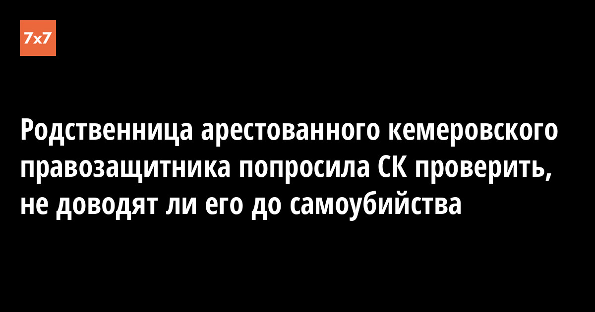 Родственница арестованного кемеровского правозащитника попросила СК проверить, не доводят ли его до самоубийства