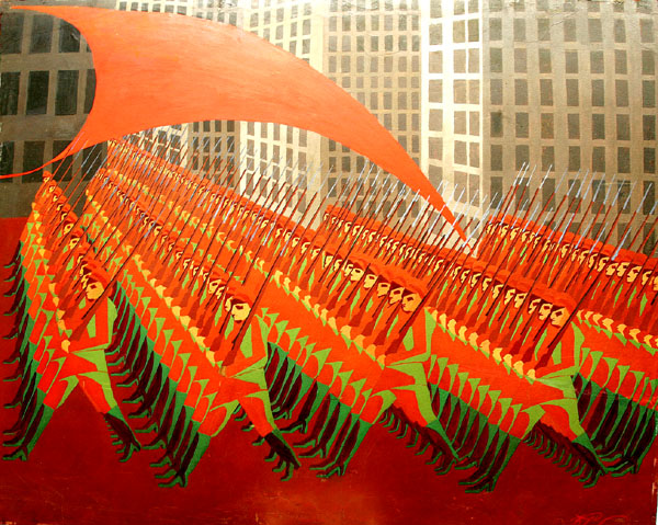 Помимо образа красной революции и белой контрреволюции на страницах появится и образ загнанного реальностью человека, человека отчаянного в своей вере, человека по-кафкиански всегда виновного — целый ряд образов, актуальных всегда и в особенности сегодня. У Брускина же революция дискредитирует себя, оборачивается васнецовской Бабой-ягой или Снеговиком-монстром, пламенем самосожжения или скелетом-притворщиком в шляпе.