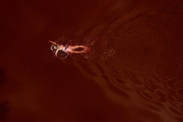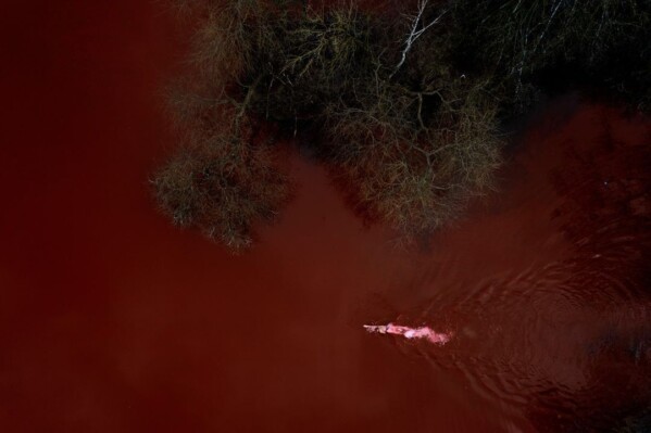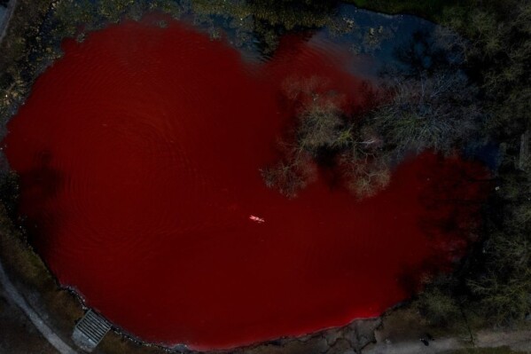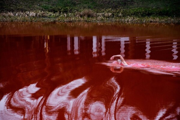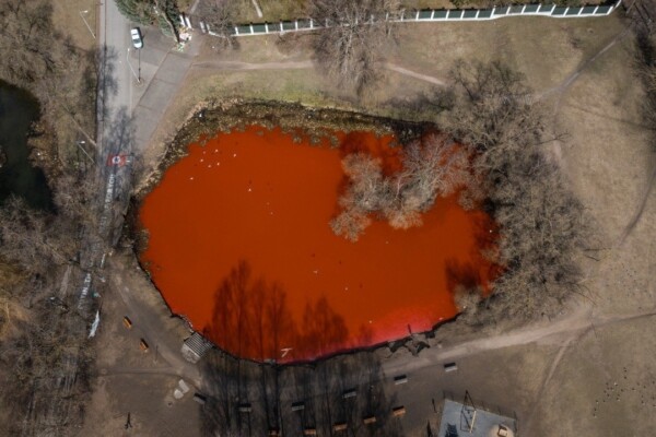 «Кровавый» пруд олицетворяет «ответственность России за военные преступления против украинцев». В акции под названием «Проплывая» приняла участие олимпийская чемпионка Рута Мейлутите. По задумке активистов, её заплыв символизирует «постоянные усилия и необходимость борьбы».