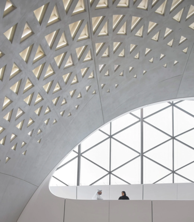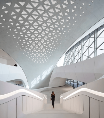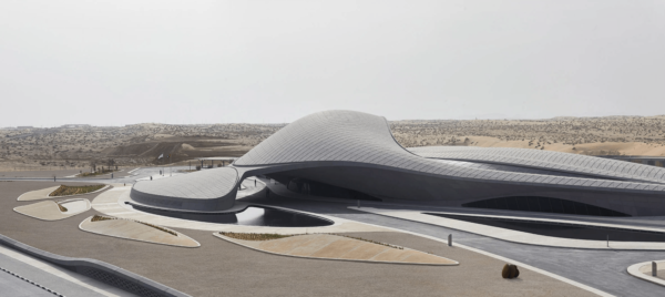 Повторяющая окружающие песчаные дюны форма здания спроектирована таким образом, чтобы выдерживать местные экстремальные погодные условия. Использование стекла свели к минимуму, чтобы снизить воздействие солнечных лучей. Панели на фасаде из армированного стекловолокном бетона помогают регулировать температуру в помещениях.