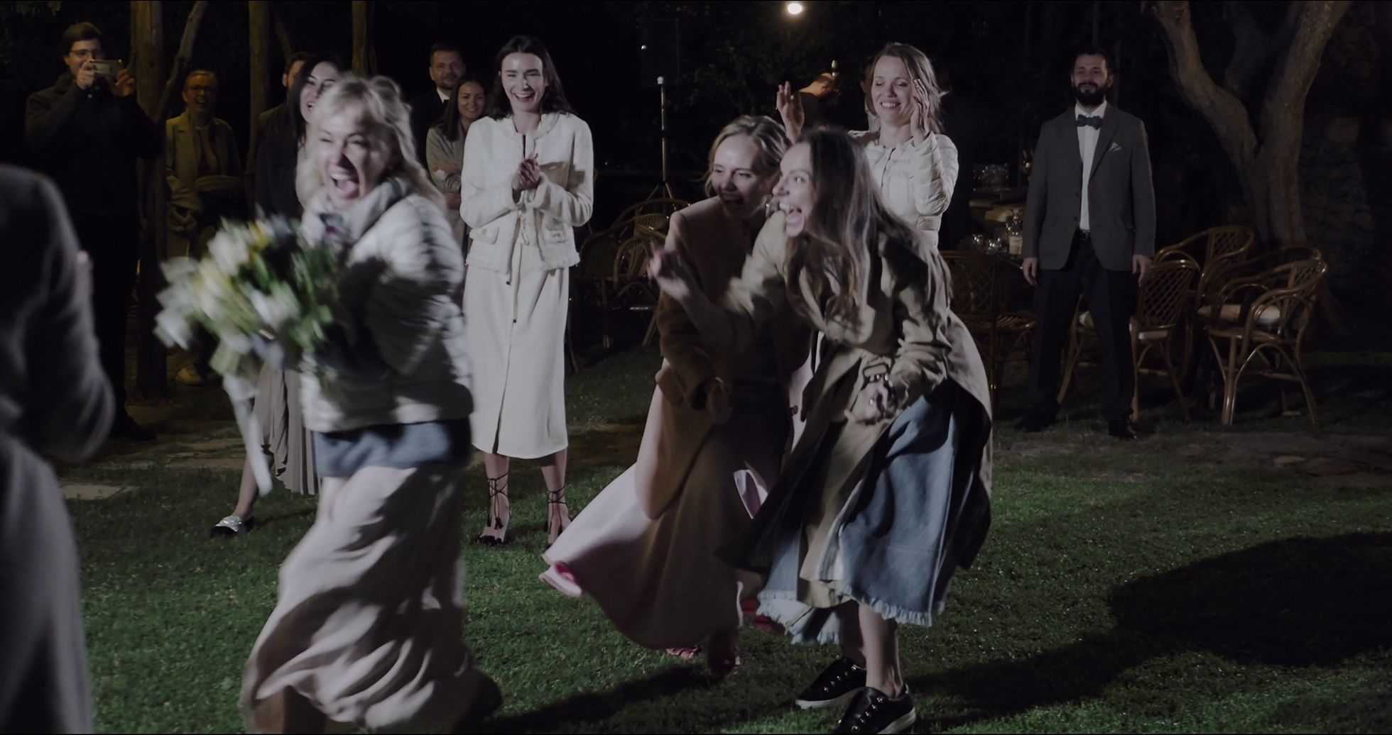 На нескольких кадрах видно, что этой ночью Воронцова танцевала с невысоким бородатым мужчиной в бабочке. Друг жениха и невесты, на свадьбе он участвовал в конкурсах — вышел к гостям вместе с тремя другими мужчинами в разрезанной на лоскуты сорочке (якобы такие рубашки проще гладить женам).
