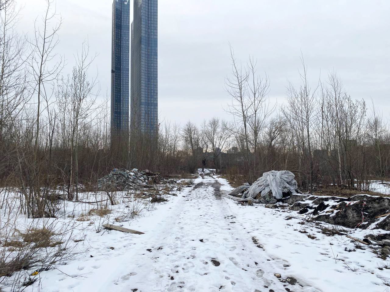 Как писали «Открытые медиа», замороженное в 2014-м строительство ненадолго реанимировали четыре года спустя. Но, как убедились журналисты «Медузы» и «Настоящего времени», сейчас на участке нет ни рабочих, ни техники (по пустырю на месте стройки бродит стая бродячих собак).