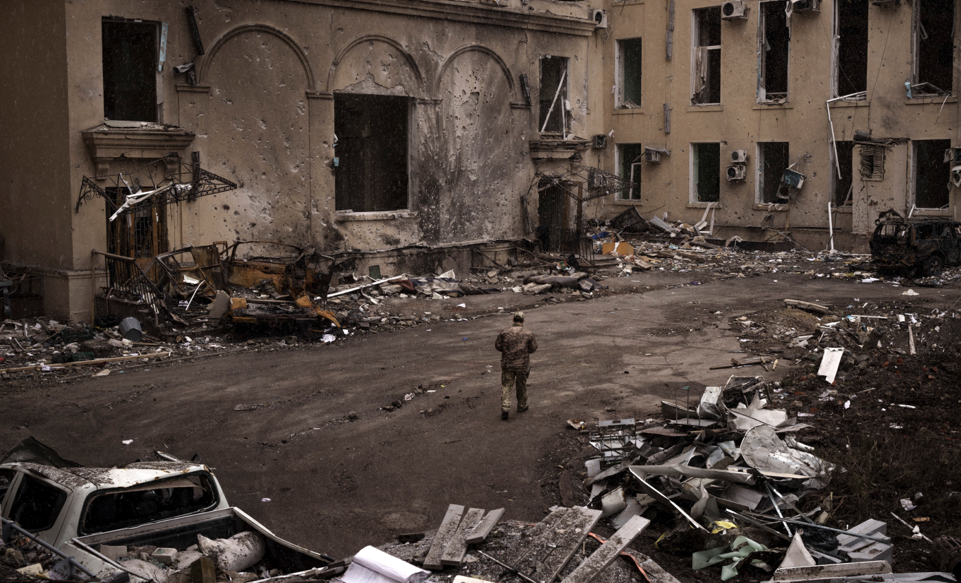 Здание Харьковской областной администрации, 27 марта 2022 года. Фото: Felipe Dana / AP