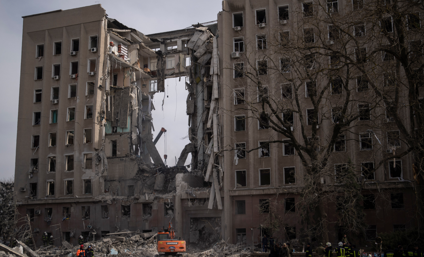 Поврежденная Николаевская областная администрация, 29 марта 2022 года. Фото: Petros Giannakouris / AP