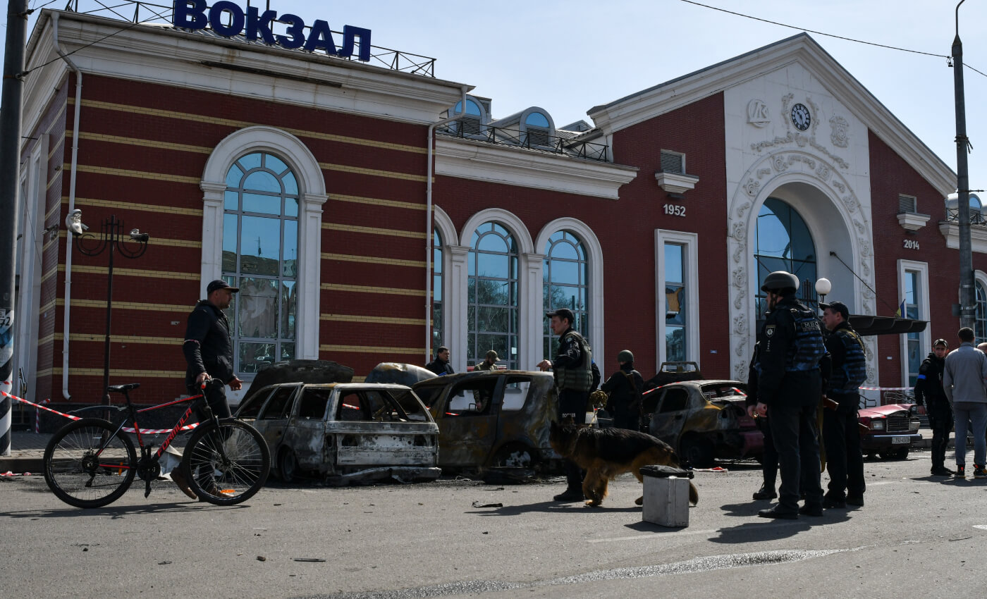 Поврежденные машины у вокзала в Краматорске, 8 апреля 2022 года. Фото: Andriy Andriyenko / AP