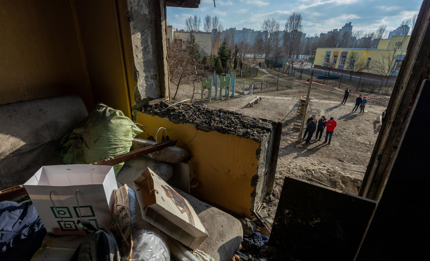 Разрушенный жилой дом в Киеве, 25 февраля 2022 года. Фото: Alexander Ermochenko / Reuters