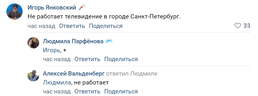 Жители Петербурга и Ленобласти сообщают, что днем 10 апреля у них перестало работать телевидение от «Ростелекома». В группе компании во «ВКонтакте» — десятки жалоб.