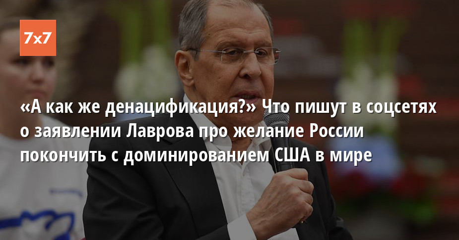 Глава МИД РФ Сергей Лавров заявил, что военная спецоперация в Украине призвана положить конец «безоглядному курсу на полное доминирование» в мире США и под ними стран Запада. По его словам, это доминирование выстраивается с грубейшими нарушениями международного права и по неким новым правилам, вырабатываемым «от случая к случаю». Что о заявлении Лаврова пишут в соцсетях — в обзоре блогов «7х7».
