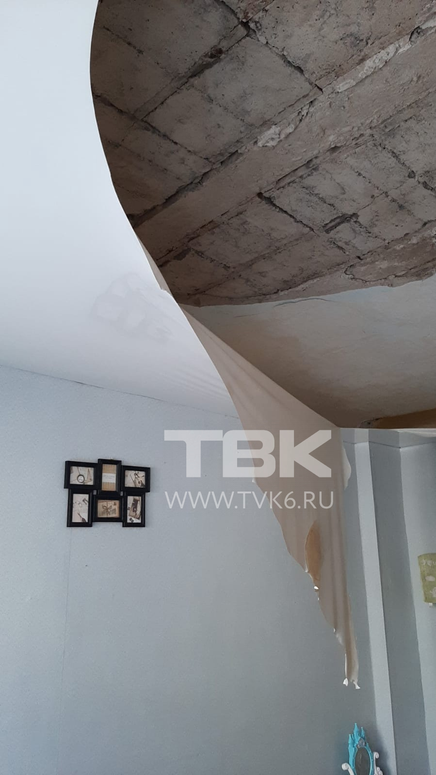 В редакцию «ТВК Красноярск» обратился житель дома по ул. Энергетиков Геннадий. Он рассказал, что ночью 11 апреля в его квартире обрушился потолок. Вся семья в этот момент спала – это сам глава семейства, его жена, 4-летний сын, 3-летняя дочь и 2-месячный сын. От тяжелых последствий людей спас натяжной потолок.
