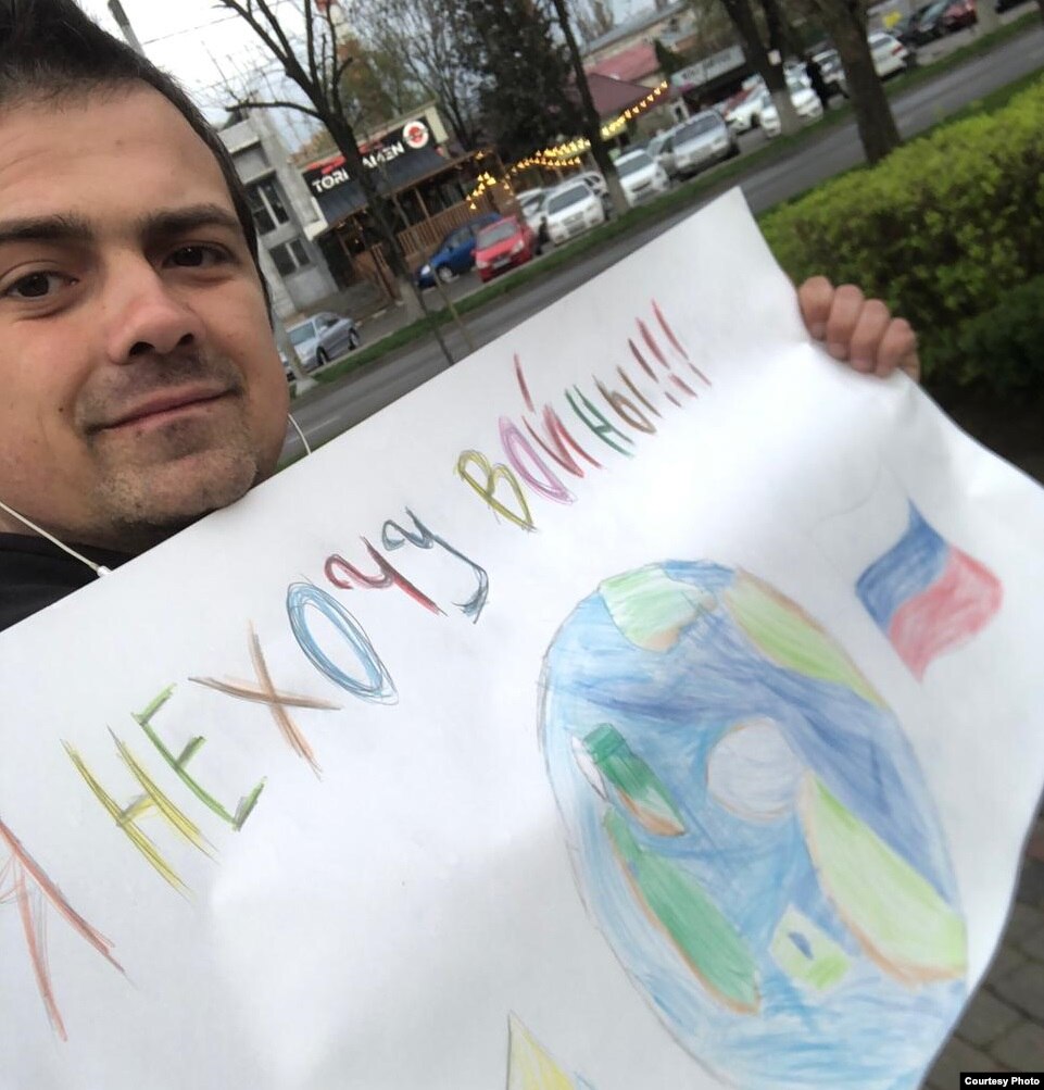 "Я шел по аллее на улице Красной в сторону торгового центра "Галерея" с плакатом "Я не хочу войны" и нарисованными флагами России и Украины. В полиции я не признал, что виновен. Ни закон о публичных мероприятиях, ни другие законы я не нарушал. Также не считаю, что плакат дискредитировал российские вооруженные силы", - рассказал Кавказ.Реалии Лукач.