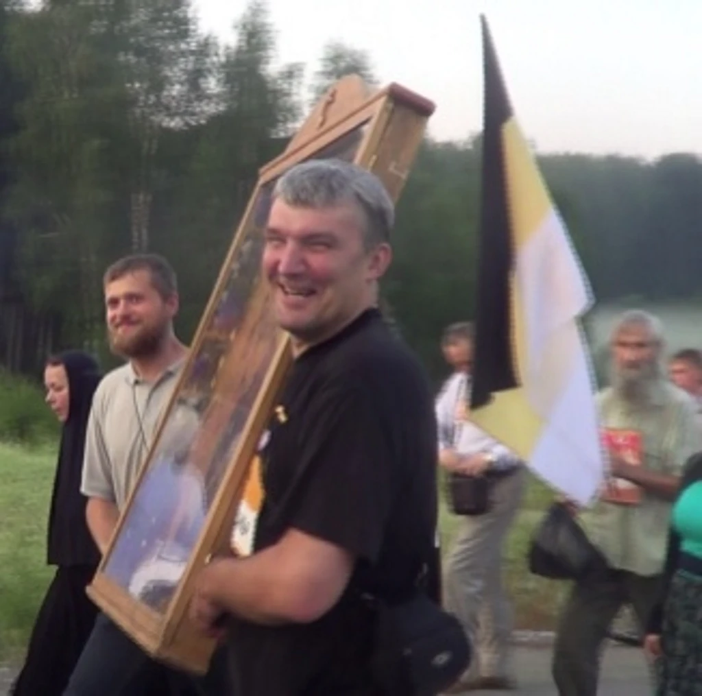 Сохранилось и общее фото, на котором оба они участвуют в крестном ходе — вдвоем несут икону, за спинами — бело-черно-желтый «имперский» флаг.