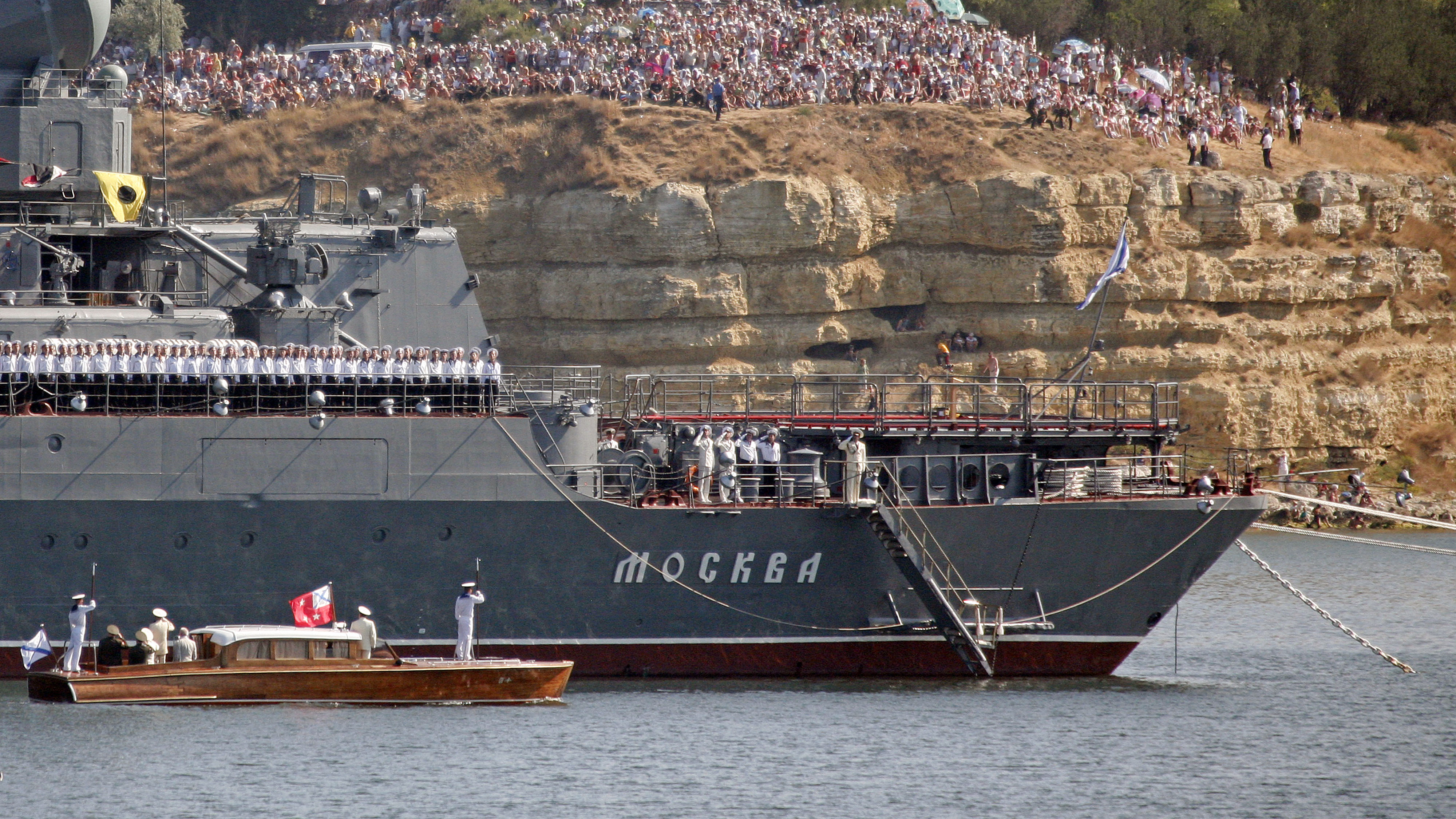 Как сообщалось ранее, еще 10 апреля ракетный крейсер «Москва» Черноморского флота России стоял на якоре в Севастопольской бухте напротив Аполлоновой бухты.