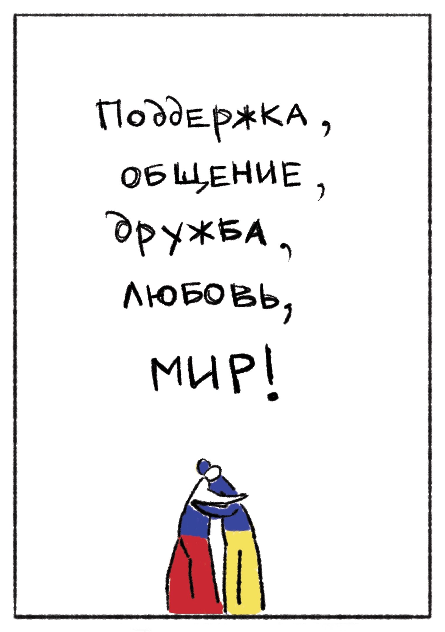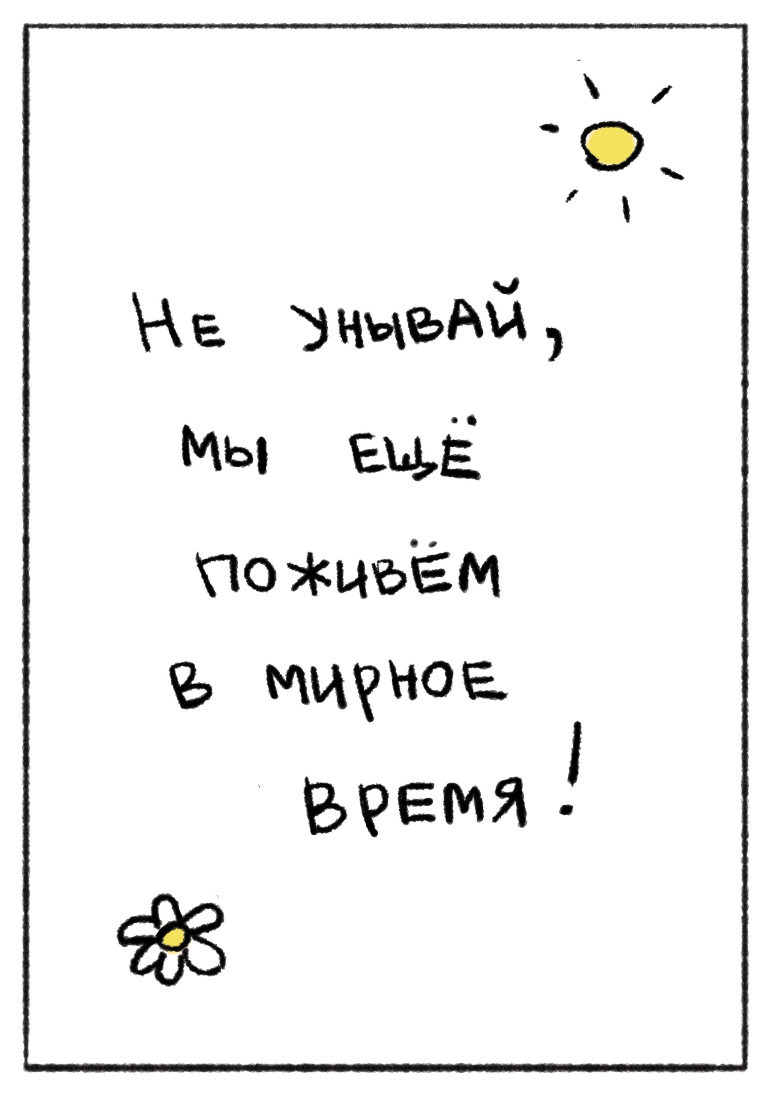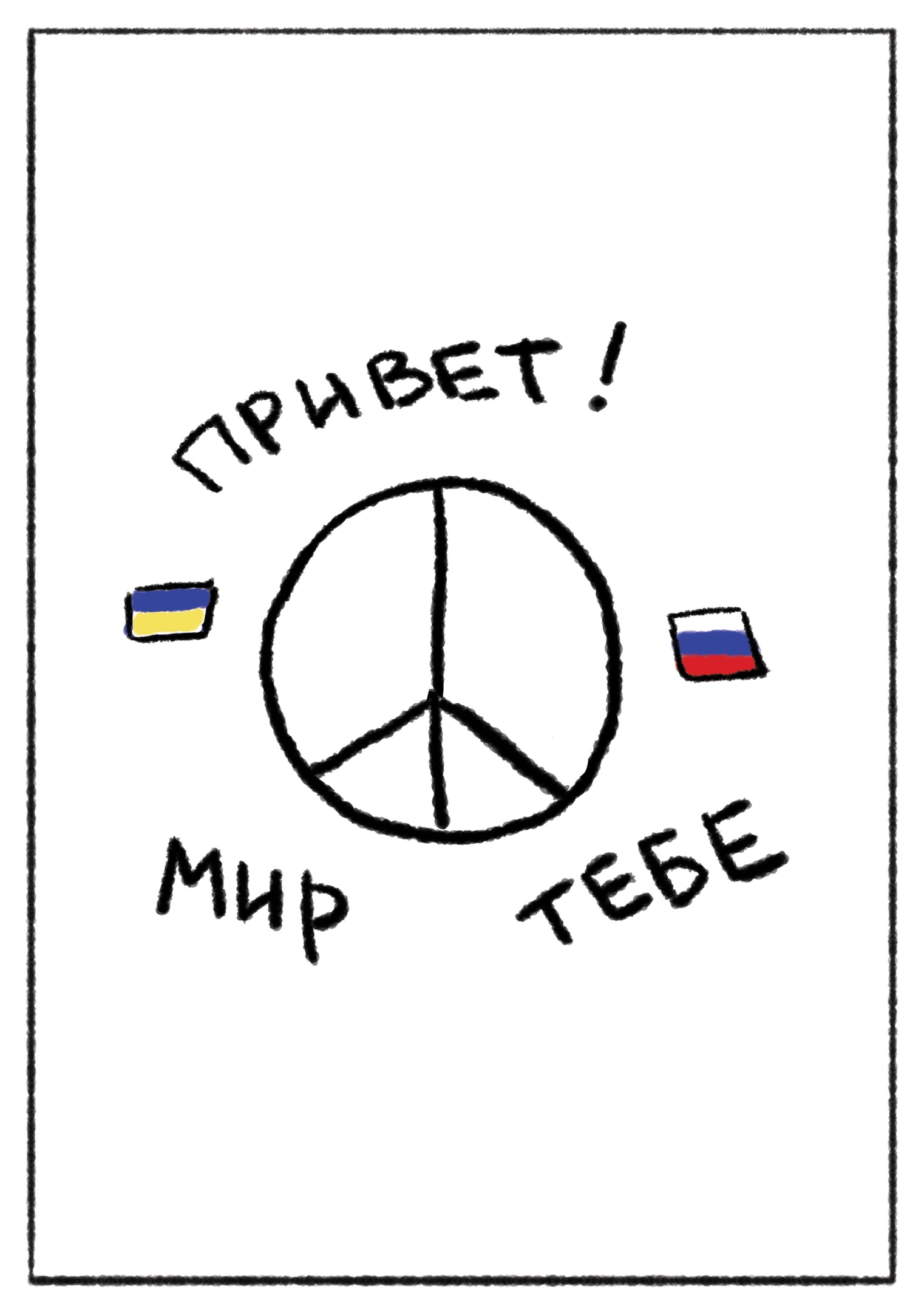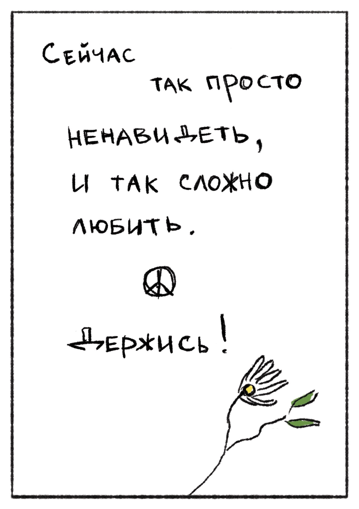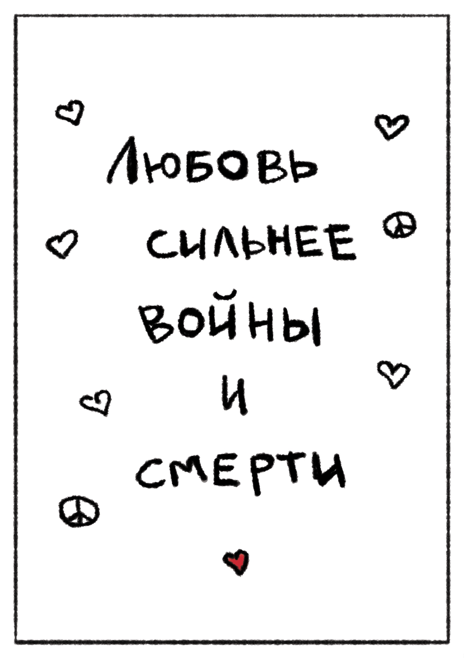 С началом боевых действий в Украине Саша Скочиленко нарисовала открытки — о том, что любовь сильнее войны, а человеческая жизнь не имеет цены. «Бумага» публикует девять открыток Саши.