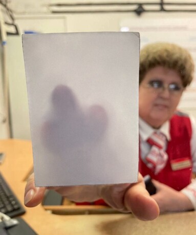 Мем: Сотрудница МФЦ прислоняет лист бумаги к стеклу