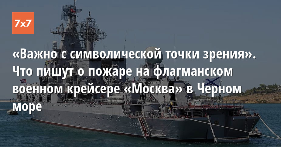 Минобороны РФ сообщило, что из-за пожара на военном крейсере «Москва» в Черном море взорвался боезапас. Корабль получил серьезные повреждения, а его экипаж эвакуировали. Власти Украины утверждают, что их войска атаковали корабль ракетами. Они добавили, что именно «Москва» участвовала в операции у одесского острова Змеиного и с ней связана фраза «Русский военный корабль, *** ** *** [уйди прочь]». Что о случившемся пишут в соцсетях — в обзоре блогов «7х7».