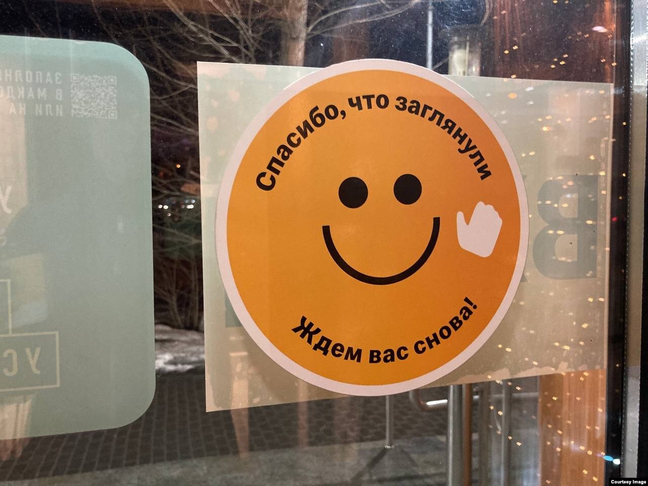 Наклейка на двери в тюменском кафе "Макдональдс"