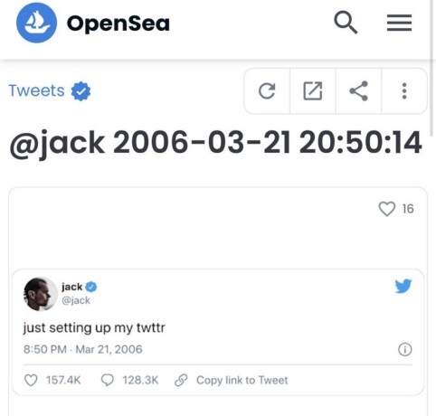 В 2021 году Джек Дорси продал свой первый твит в виде NFT за 2,9 миллиона долларов, а вырученные деньги направил на благотворительность. Покупателем стал генеральный директор малазийского стартапа Bridge Oracle Сина Эстави, который получил «уникальный цифровой сертификат твита, подписанный и проверенный автором». Сама запись при этом осталась доступна в соцсети.