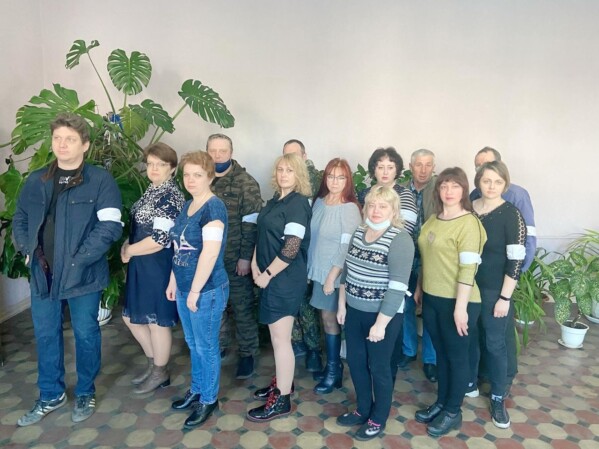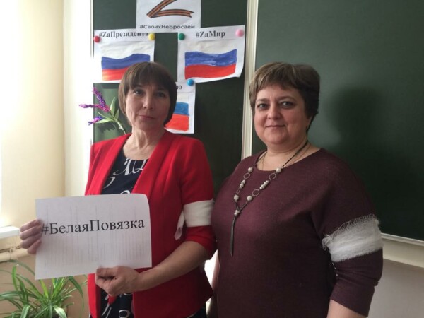 Российские бюджетники участвуют в новом флешмобе в поддержку российской армии на Украине. Они фотографируются с белыми повязками на предплечье. На это обратила внимание русская служба «Би-би-си».