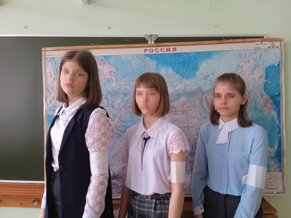 В соцсетях также встречаются снимки школьников, которые вместе с одноклассниками фотографируются в повязках.