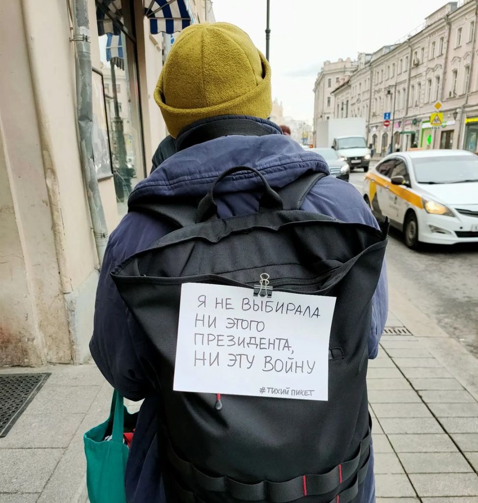 Формат тихого пикета придумала активистка Даша Серенко. В 2016 году она начала ездить в метро с плакатами о домашнем насилии, политзаключенных, гомофобии, сексизме и других формах дискриминации. Когда началась война, акцию перезапустили ФАС и «Восьмая инициативная группа» — активисты перемещаются по своим городам в одежде с антивоенными лозунгами или с небольшими плакатами на сумках или рюкзаках.