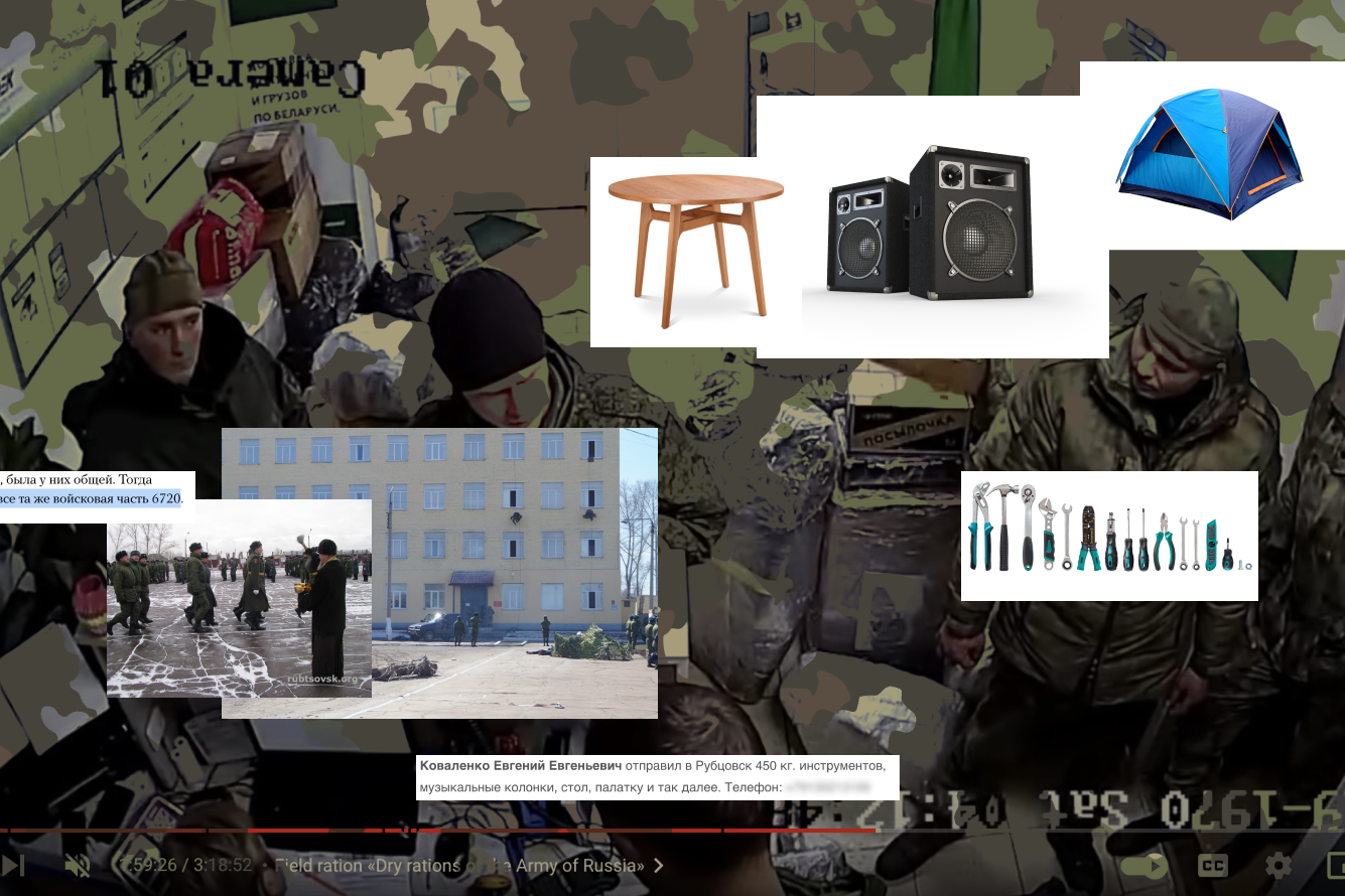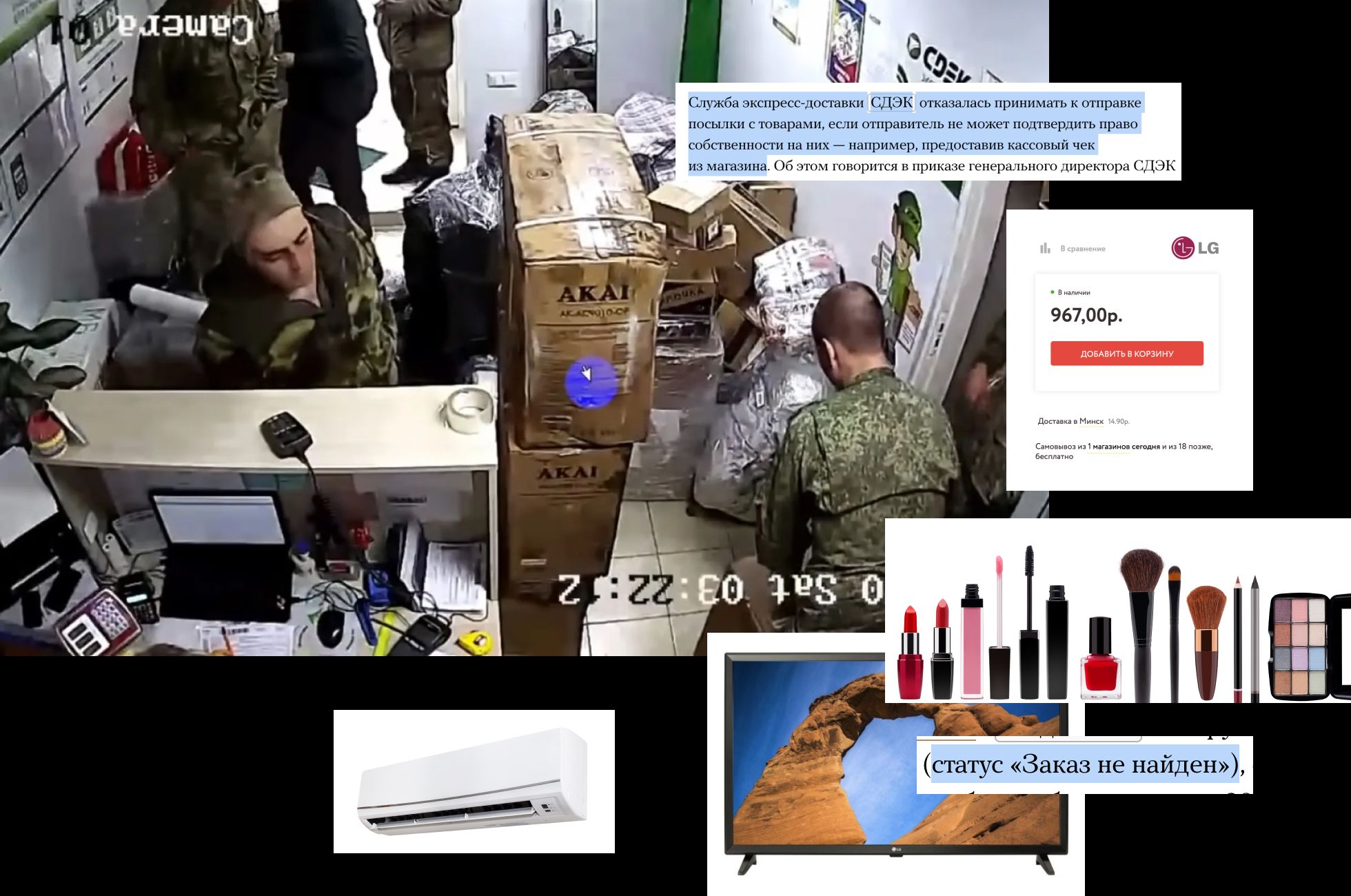 Трехчасовое видео с подписью «Российские солдаты отправляют через СДЭК краденые в Украине вещи в РФ» в начале апреля выложил телеграм-канал «Беларускi Гаюн». Также он получил от неназванного источника «массив личных данных» российских солдат, пересылавших вещи с помощью СДЭК из белорусского Мозыря. Канал опубликовал имена и номера телефонов 16 человек, которые 2 апреля отправили в Россию крупные грузы из Мозыря — весом от 50 до 440 килограммов.