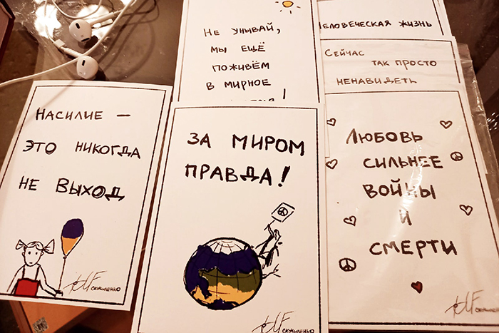 Ранее Саша нарисовала антивоенные стикеры: «Не унывай, мы еще поживем в мирное время!» и «Человеческая жизнь не имеет цены».
