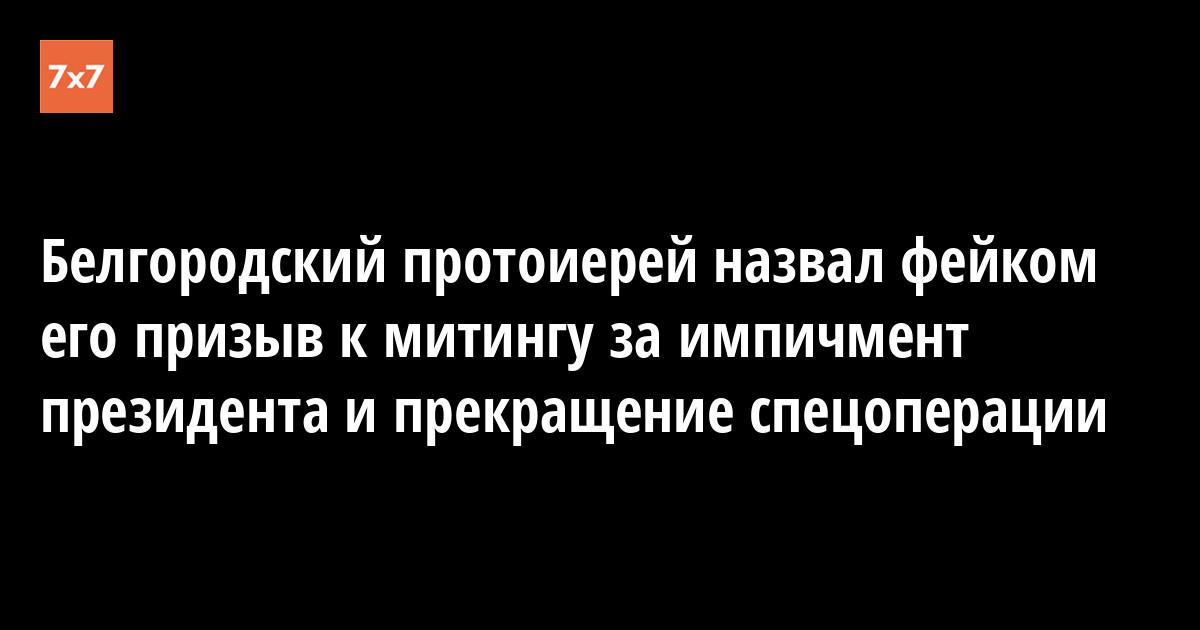 Белгородский протоиерей назвал фейком его призыв к митингу за импичмент президента и прекращение спецоперации