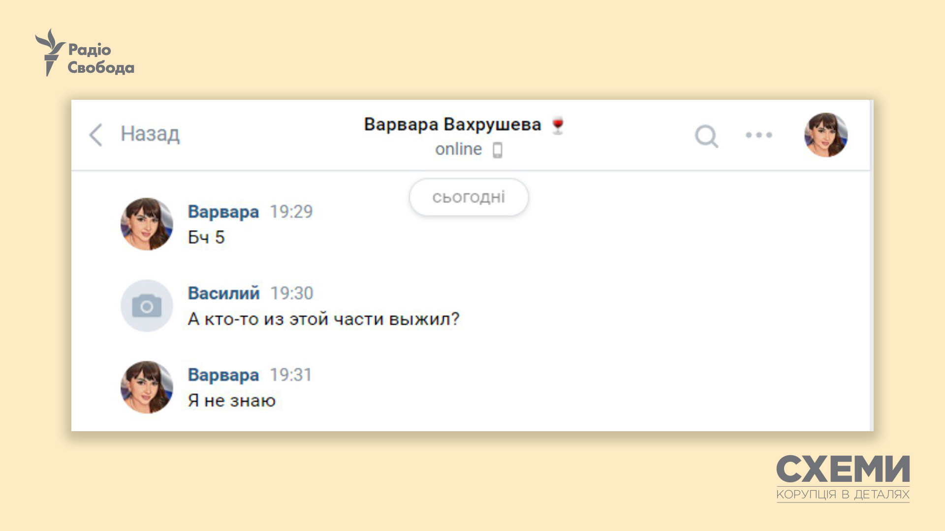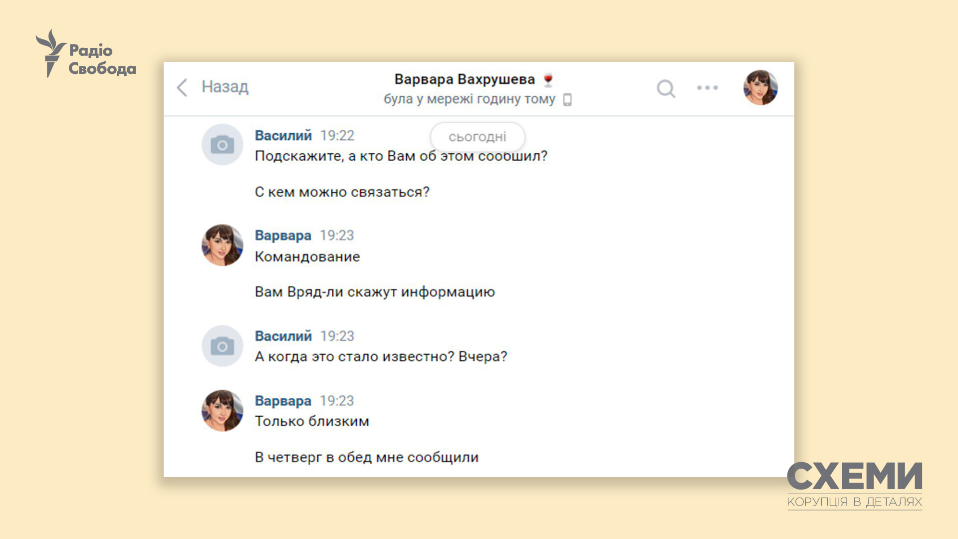 Пользователь ВКонтакте по просьбе «Схем» обратился к Варваре Вахрушевой, которая подтвердила, что ее муж погиб в результате затопления крейсера «Москва». При этом обстоятельства гибели Вахрушева жене не сообщили. «Тело его обнаружили. Сообщили в четверг (14 апреля – ред.)», – сообщила Вахрушева.