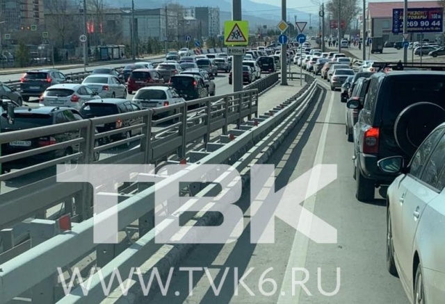 Также в редакцию «ТВК Красноярск» поступили сообщения о пробках на въезде на о. Татышева. Пробка собралась от ТЦ «Июнь».