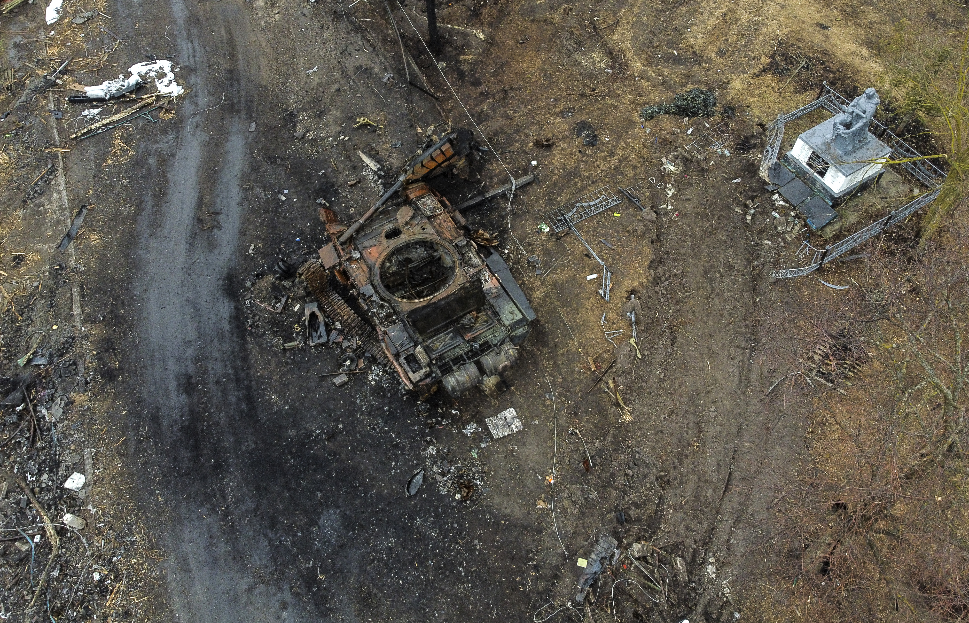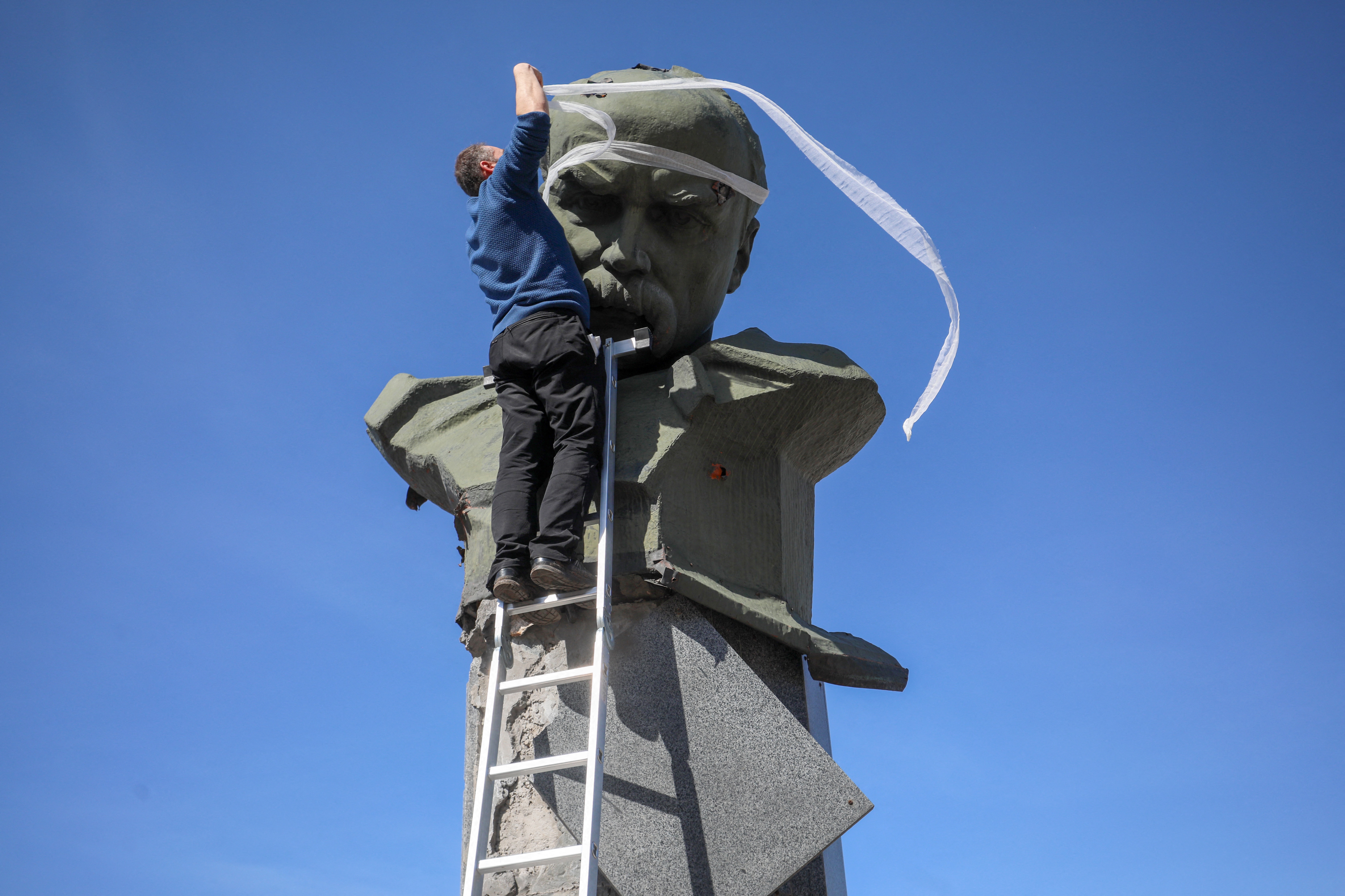 Бородянку русские возненавидели до такой степени, что кто-то из солдат пальнул на прощание по бронзовому Тарасу Шевченко. Потом русские танки ушли, а местные перевязали голову поэта лоскутом из белой простыни.