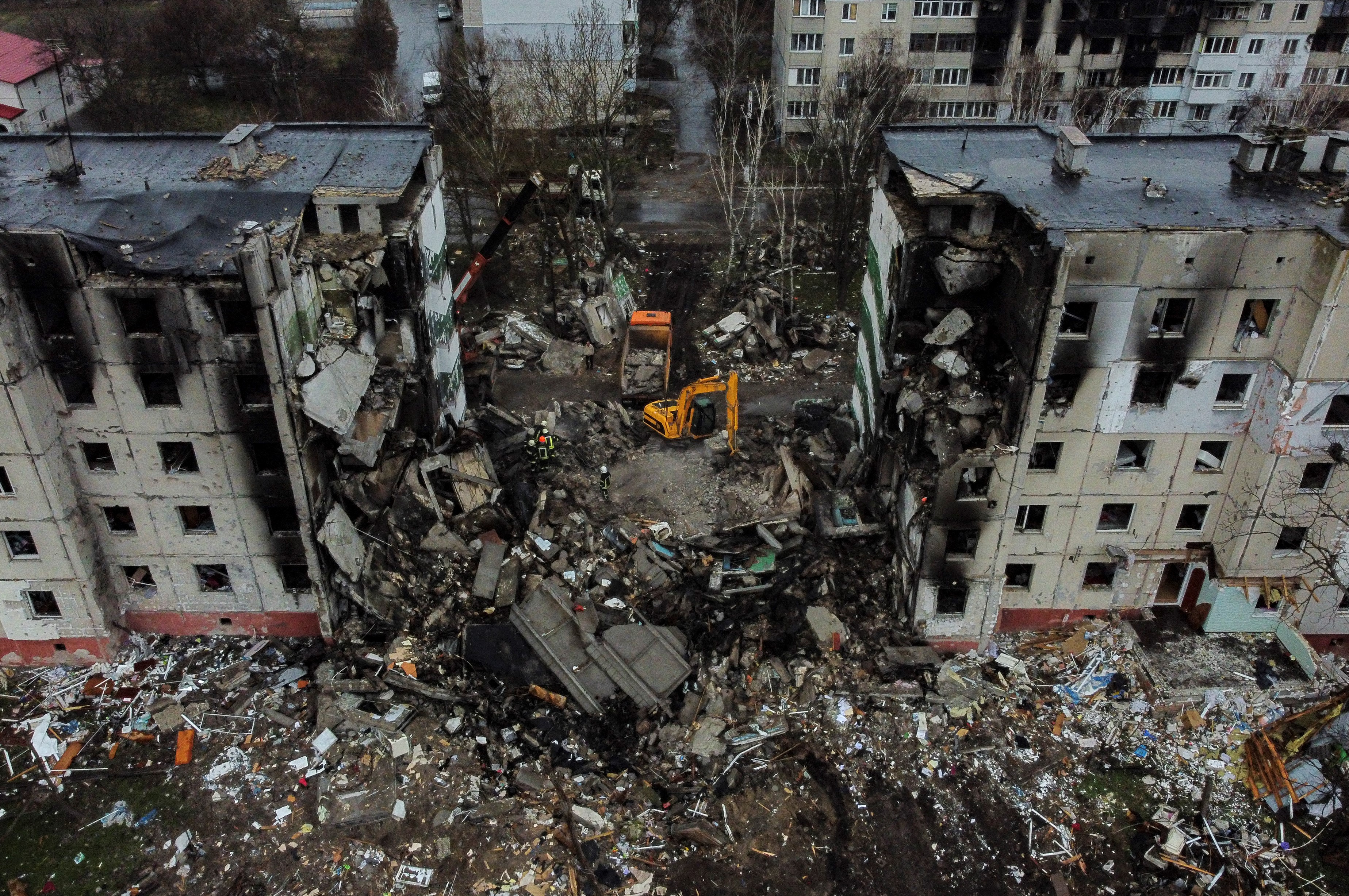 Скелеты бородянских домов похожи на кукольные домики. Видно, у кого была какая кухня. Какая стенка стояла у соседа в большой комнате. Какая ванна – или, может, душевая кабина?
