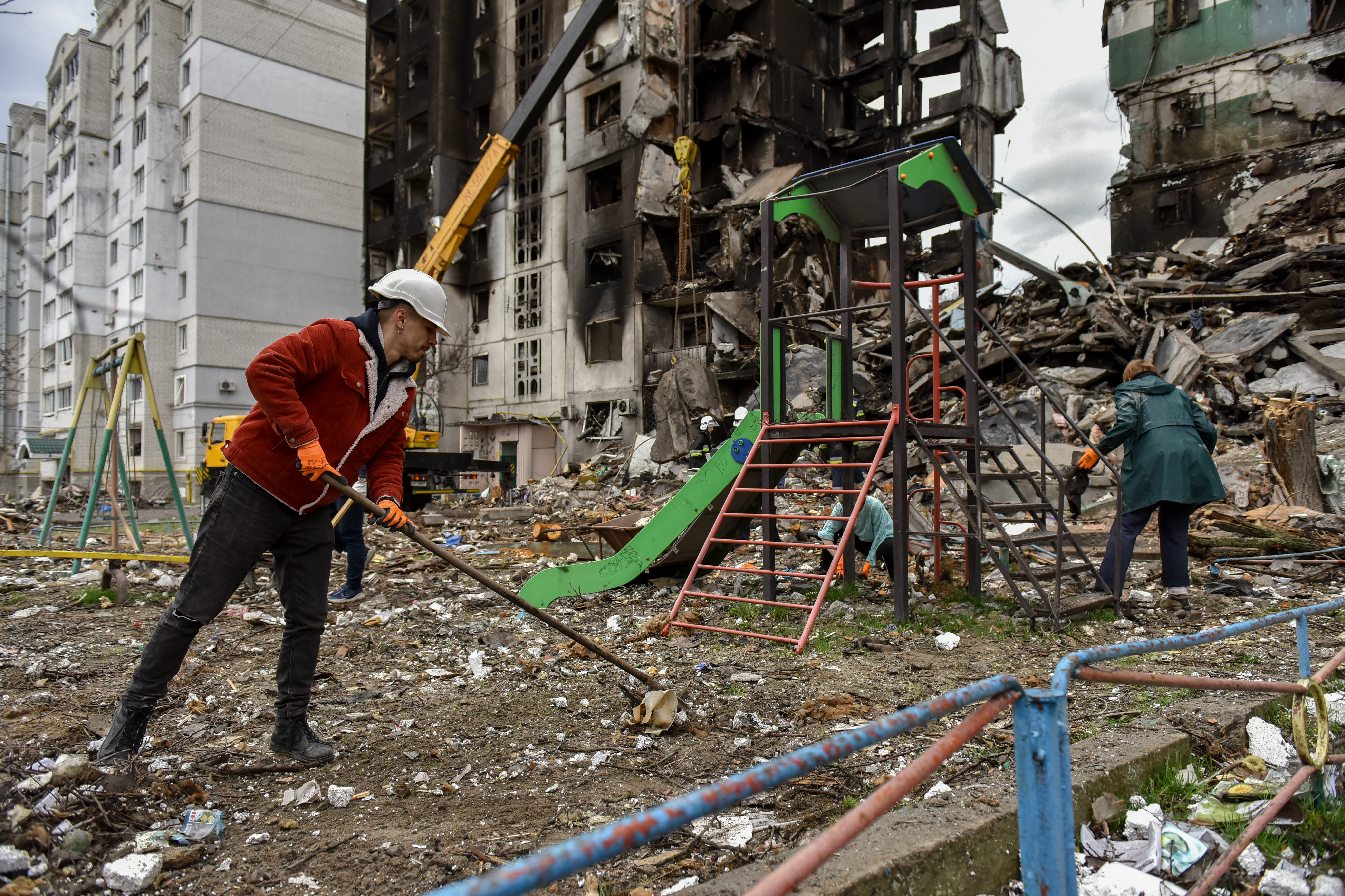 – Когда те дома разбомбили, мы побежали туда спасать людей. А русские отгоняют, не дают к завалам подойти. Крики оттуда слышно. А потом уже и не слышно. Теперь нам бы их оттуда достать.