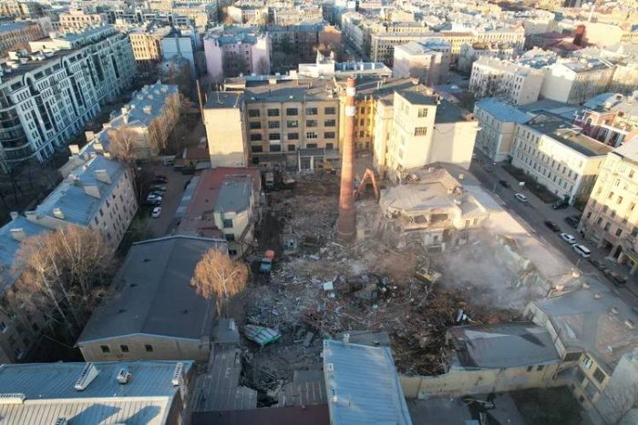 Постройки на Малом проспекте Петроградской стороны начали сносить на прошлой неделе. Градозащитники пытались остановить демонтаж, вызывали полицию, но это не помешало подрядчику продолжать работы. В итоге два дворовых флигеля оказались частично разрушены.