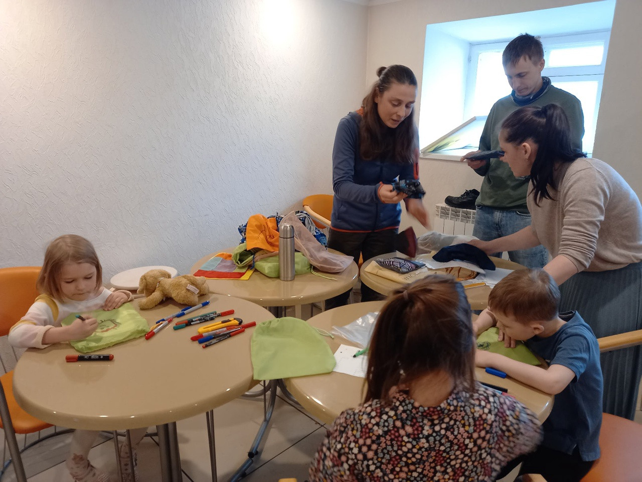 И конечно, мы рисовали! Каждый участник стал обладателем экомешочка, который сам же и разукрасил. Теперь и у этих детей есть возможность отказаться от одноразового пластика) И вот мое первое домашнее задание вам всем — сходить в магазин, купить яблочки или груши, любимые фрукты в свои личные мешочки!!! Не забудете?))