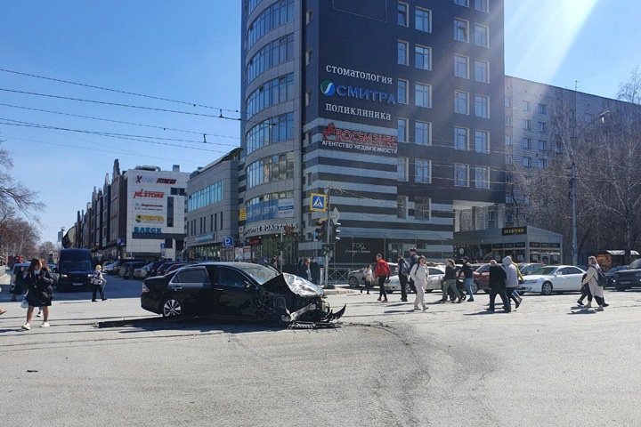 Три машины столкнулись в центре левобережья Новосибирска. Трамвайные пути оказались заблокированы. Фото,