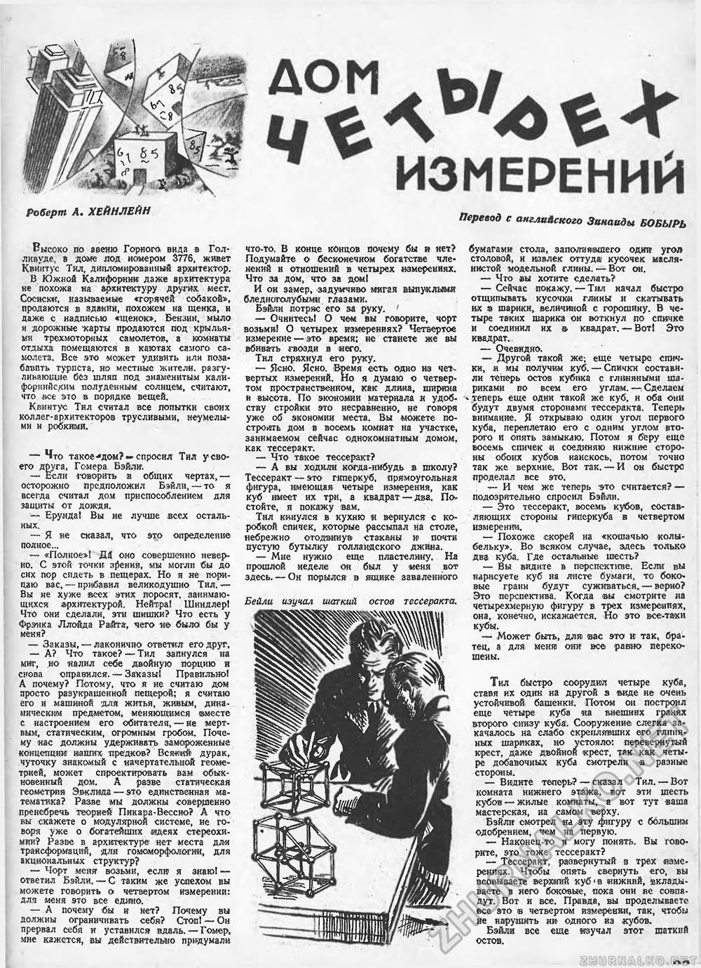 В самый разгар Великой Отечественной войны, во время наступления Красной армии на правобережной Украине, в сдвоенном февральско-мартовском номере журнала «Техники — молодежи» был впервые опубликован на русском языке рассказ «Дом четырех измерений» Роберта Хайнлайна, одного из самых известных писателей-фантастов Америки, да и всего мира.