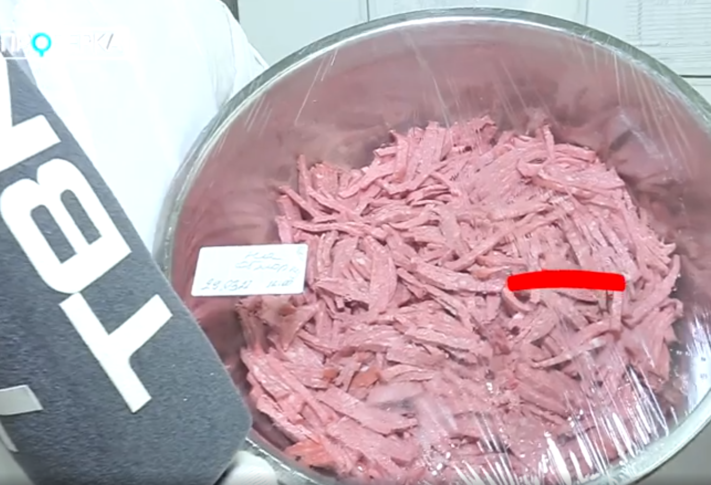 В холодильных камерах все продукты без разбора свалены в общую кучу, а мясо вываливается из упаковок. Такое хранение не соответствует санитарным нормам.