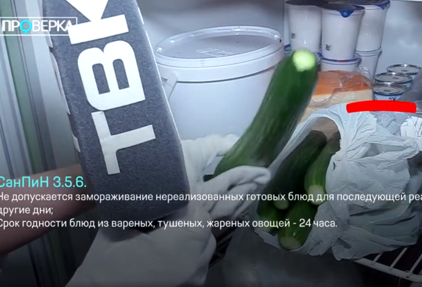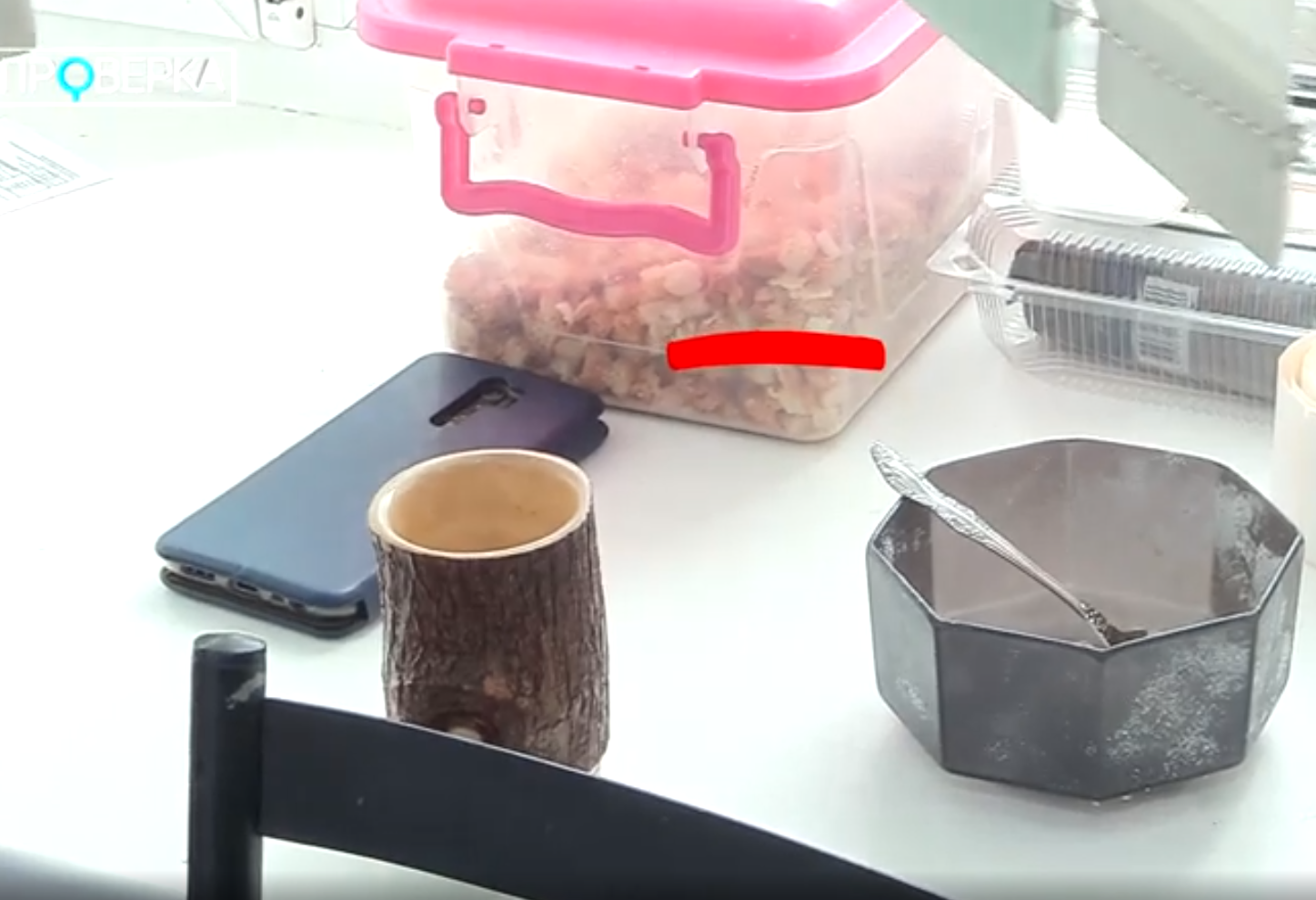 Нашлись и просроченные продукты, которые хранятся рядом с нормальными. Объяснения, почему они до сих пор не выброшены, съемочная группа получить не смогла.