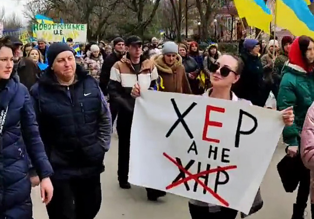 12 марта депутат Херсонского областного совета Сергей Хлань сообщил, что оккупанты обзванивают членов совета и спрашивают, готовы ли те к сотрудничеству. В тот же день депутаты облсовета на экстренном заседании приняли резолюцию в поддержку целостности Украины. "Мы, депутаты Херсонского областного совета VIII созыва, как представители общих интересов территориальных общин Херсонской области, уверяем, что Херсонщина - это часть суверенной и унитарной Украины. Никакие другие сценарии не поддерживаются ни жителями области, ни представителями депутатского корпуса областного совета, ни законно избранной народом местной власти, - говорилось в документе. - Депутаты Херсонского областного совета VIII созыва никогда не признают попыток создать на территории Херсонщины "народную республику" и заграбастать часть Украины. У нас единственный ответ оккупантам: "Русский военный корабль, иди на..."